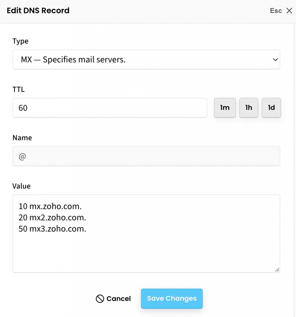 Set Zoho email by editing your MX records