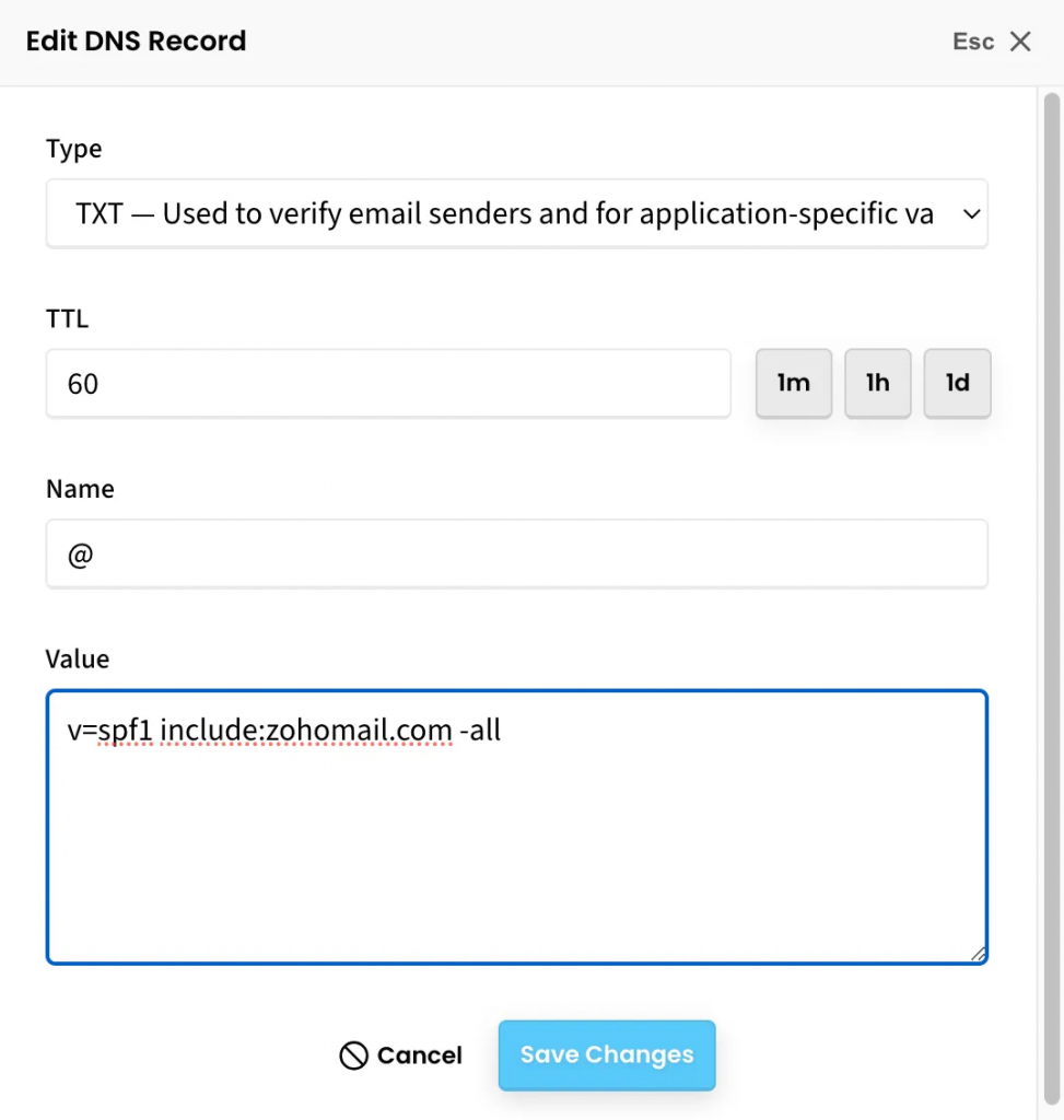Note: If there is already a value for an existing TXT record. Add the above text underneath as a new line.