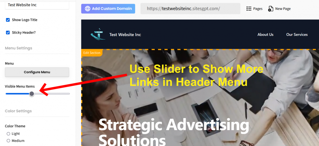 Also, links to your sub-pages should show in the footer menu.